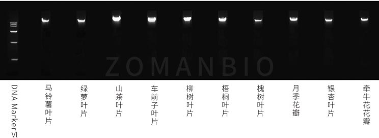 樣品:100mg樣品 100μl洗脫 M:DNA MarkerⅥ(ZOMANBIO) |