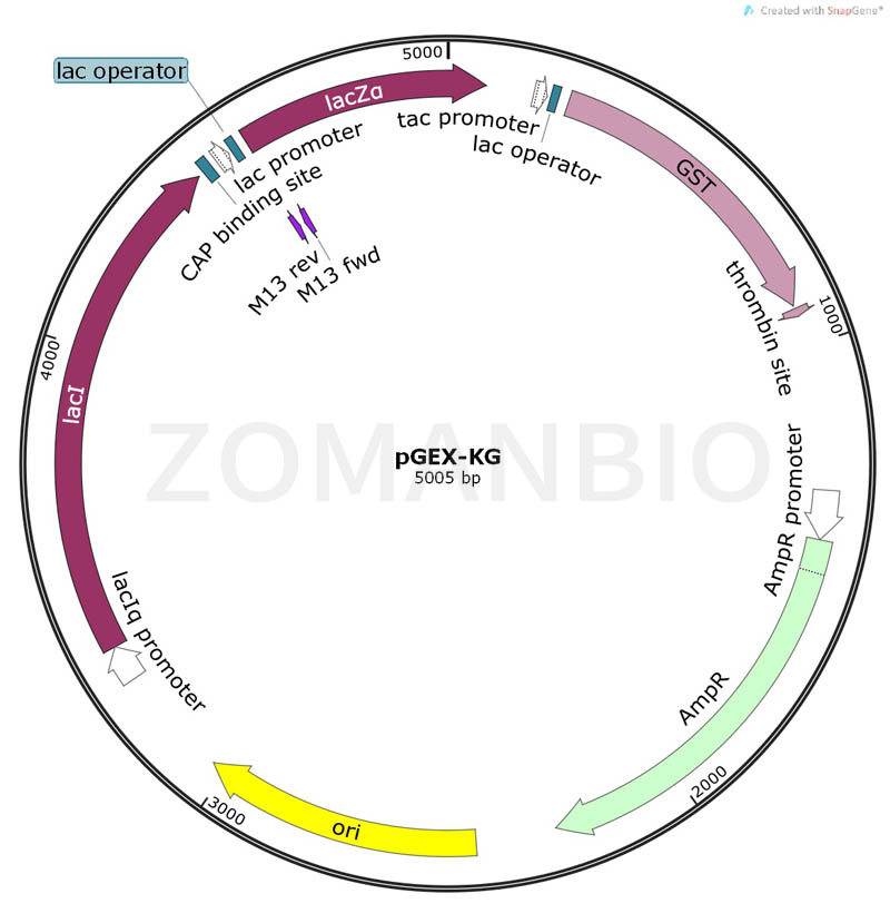 pGEX-KG載體大小為5005bp,能夠在Amp的平板上生長;含有GST標(biāo)簽,能夠用GST親和柱純化重組蛋白。質(zhì)粒只保證關(guān)鍵序列正確,不保證表達(dá)效果。