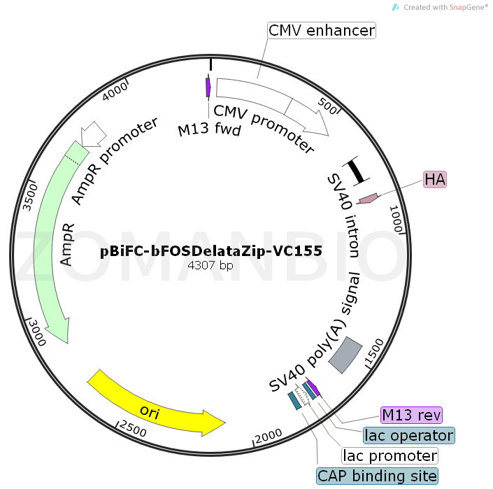 ZK524pBiFC-bFOSDelataZip-VC155雙分熒光質粒.txt