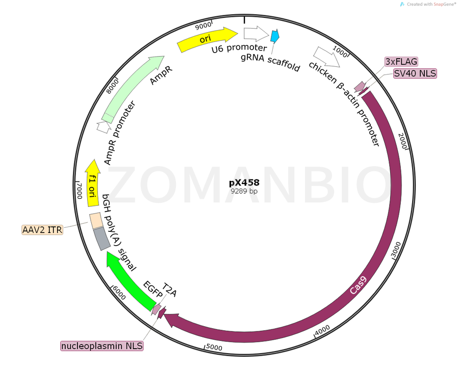 pX458哺乳細(xì)胞基因編輯質(zhì)粒