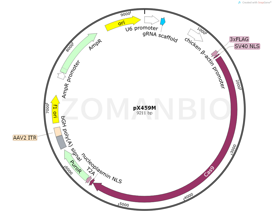 pX459M是一個哺乳細(xì)胞基因編輯質(zhì)粒。