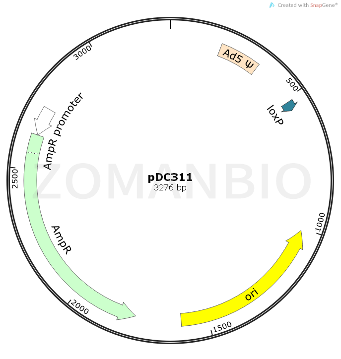 質(zhì)粒序列請(qǐng)下載:ZK727pDC311腺病毒質(zhì)粒.txt