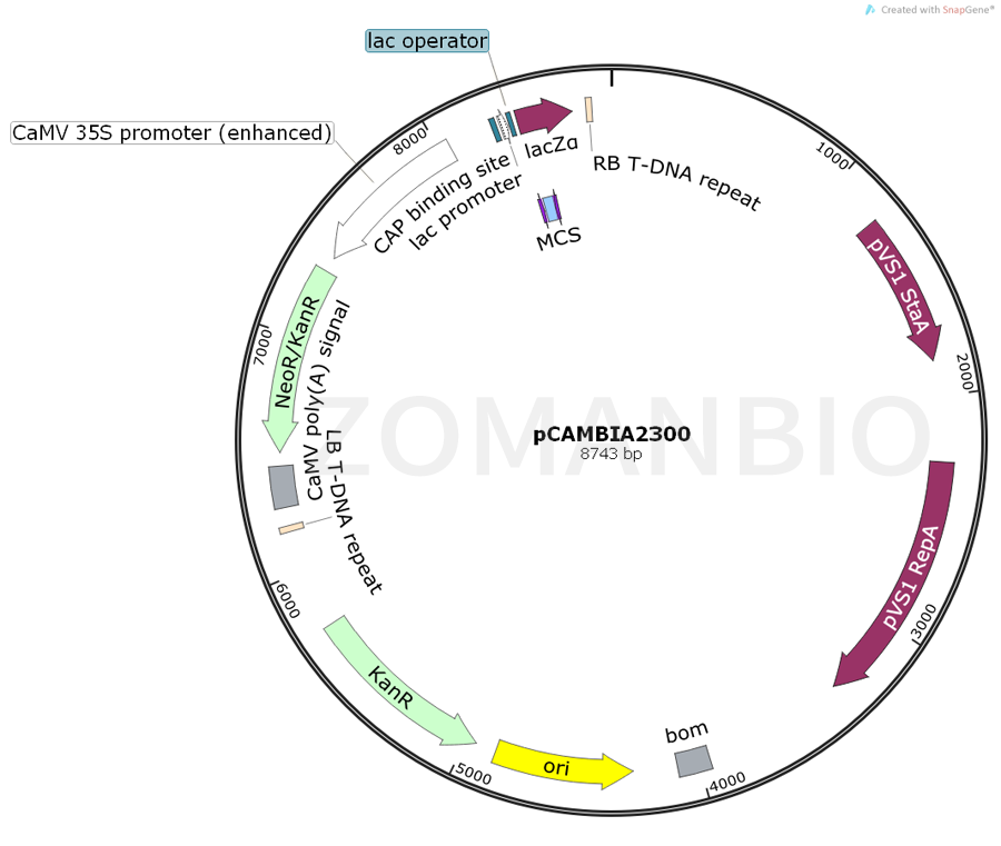 The pCambia2300 vector offers: