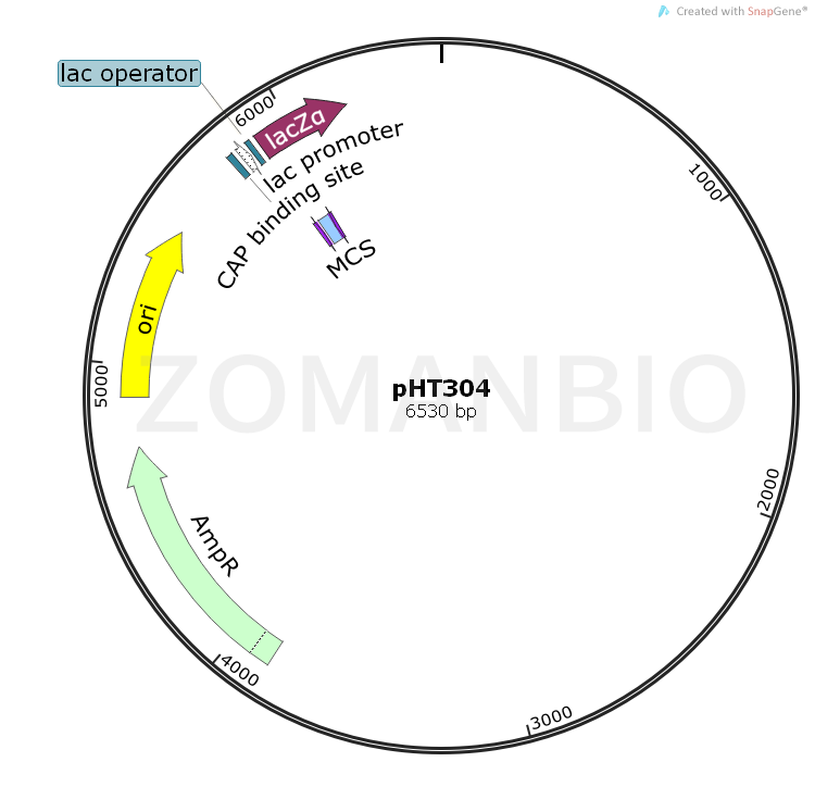 The promoter of pHT304 vector is Lac, which can be used to induce the expression of recombinant protein in Escherichia coli DE3 engineering bacteria (DE3 BL21 or DE3 Rosetta). The tag has LacZa, which can be purified by nickel column.